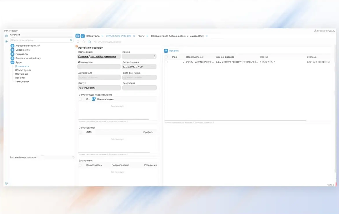 Решения Финист-Софт позволяют создавать библиотеку внутреннего контроля и проводить тестирование контроля, чтобы удерживать риск в пределах установленного вами уровня готовности к риску